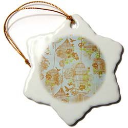 Product DescriptionSize: 3 inch Snowflake Porcelain OrnamentCoral and Llime Bird Cages Ornament is a perfect addition to your tree or as a window decoration. This glossy porcelain ornament is a great gift for family and friends, commemorating each holiday or special occasion. Image printed on both sides; measures 3 inches. A strand of gold thread makes it easy to display this fantastic keepsake.