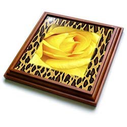 Product DescriptionSize: 8x8 Trivet with 6x6 ceramic tileCheetah Print With Yellow Rose Trivet is measuring 8w x 8h x .75d. Made of solid wood with padding on back that protects your furniture. Framed trivet comes with 6w x 6h ceramic gloss tile attached to the wood frame.