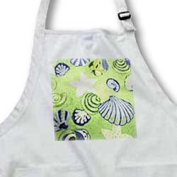 Product DescriptionSize: White-FullSeashells and Star Fish On Green Apron is made of 100% commercial quality cotton with a Teflon coating for added protection. Whether it is put to use in a restaurant or at home, this apron will always help to keep you clean. Adjustable 1" wide neck strap on both full and medium lengths. Adjustable waist ties on all sizes.