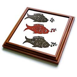 Product DescriptionSize: 8x8 Trivet with 6x6 ceramic tileRed and Brown Musical Fish Trivet is measuring 8w x 8h x .75d. Made of solid wood with padding on back that protects your furniture. Framed trivet comes with 6w x 6h ceramic gloss tile attached to the wood frame.